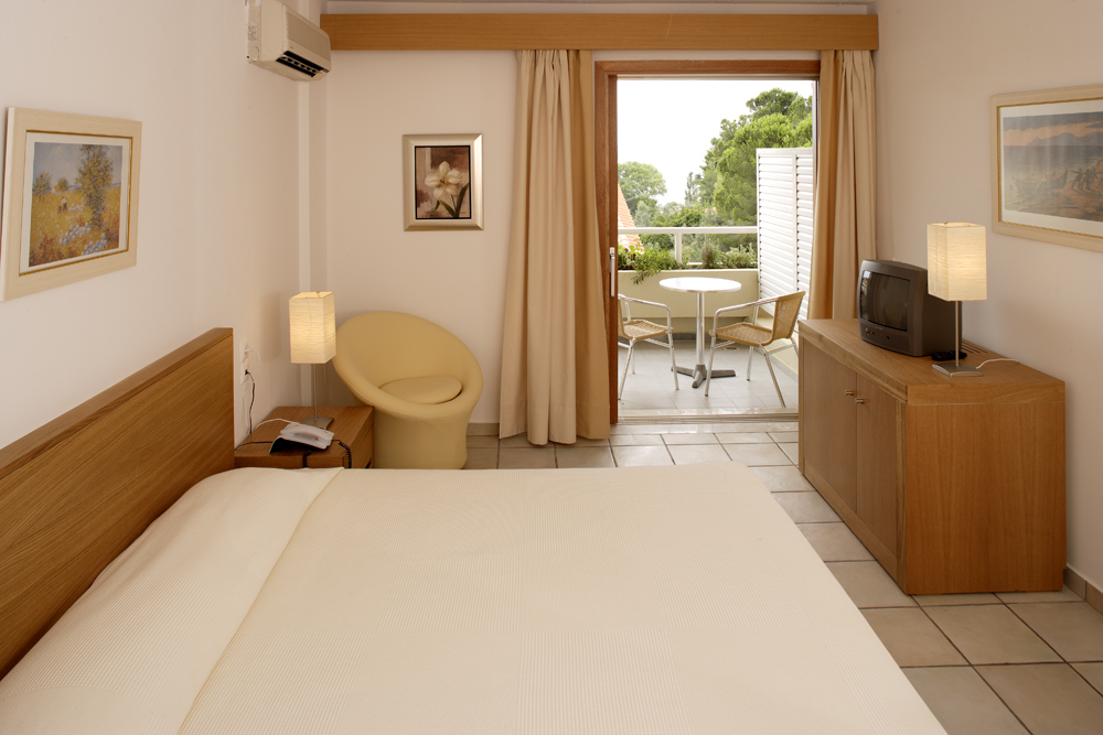 Acest hotel, administrat de o familie, este situat pe un deal de pe insula Skiathos, la doar o scurta plimbare de plaja, reflectand culorile Marii Egee.